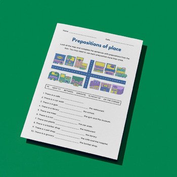 Engage your students with this vibrant and interactive worksheet focusing on prepositions of place (in, on, under, next to, etc.). Perfect for primary grades, this resource includes: