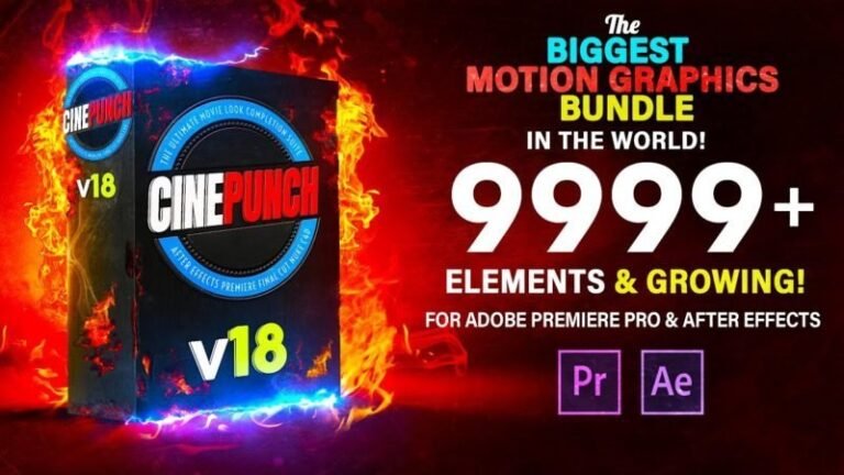 CINEPUNCH BUNDLE v18 – Premiere Transitions I Color Looks I Sound FX I 9999+ Elements